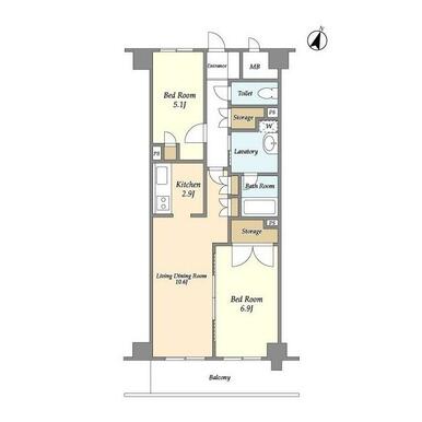 | 間取り | 2LDK(LDK13.5 洋6.9 洋5.1) | 主要採光面 | 南 |