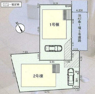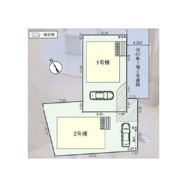 | 用途地域 | 1種低層 | 接道状況 | 北東4.2m 私道 接面2.1m 位置指定あり |